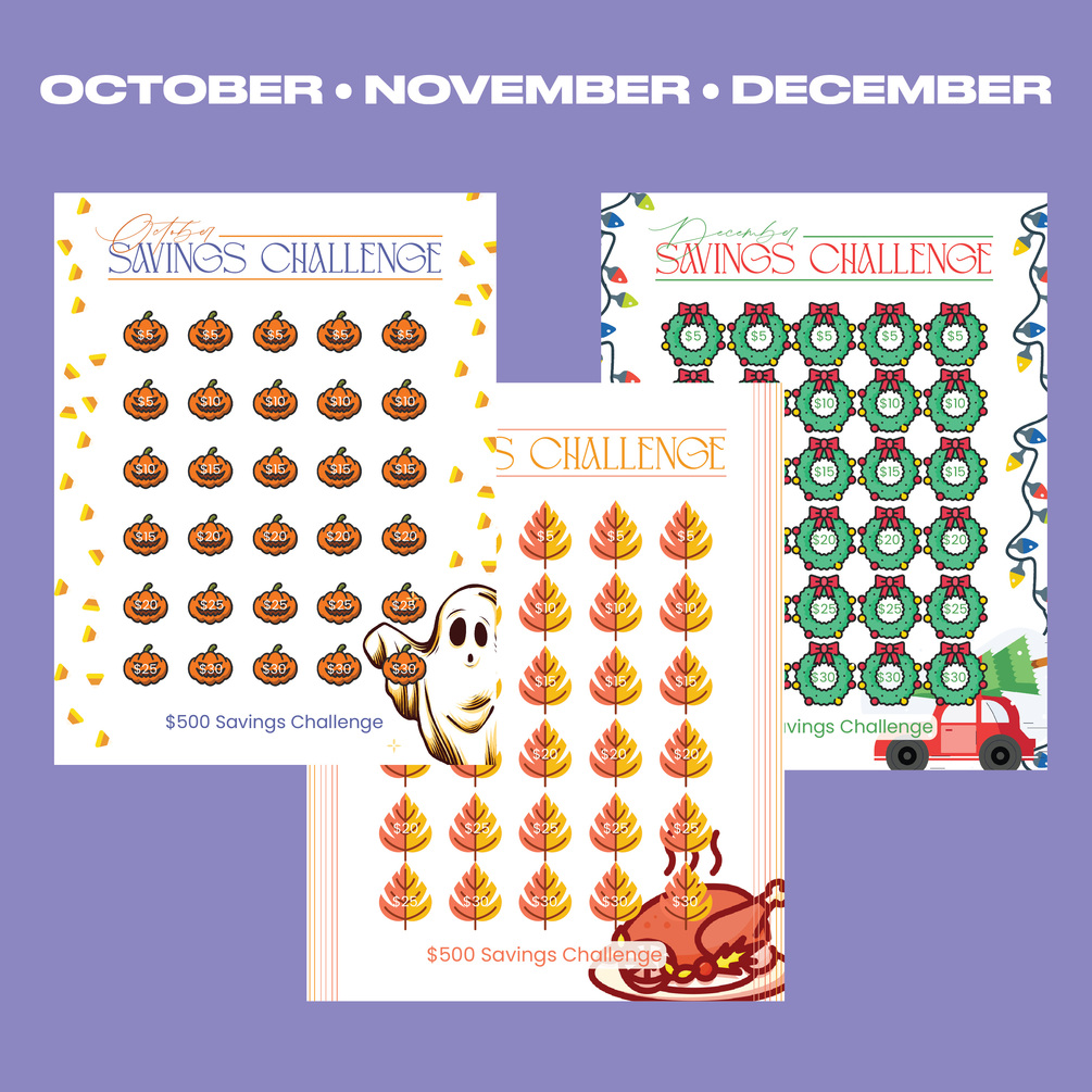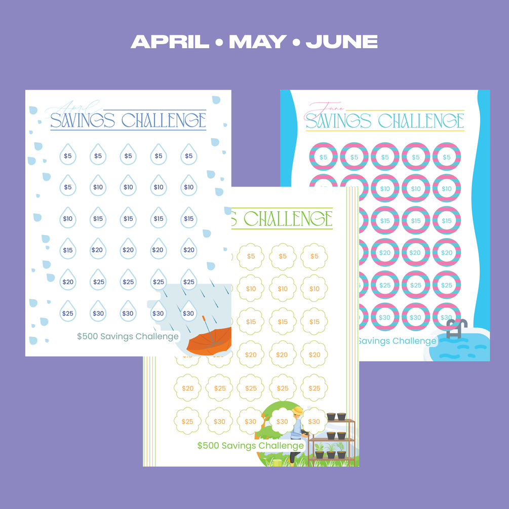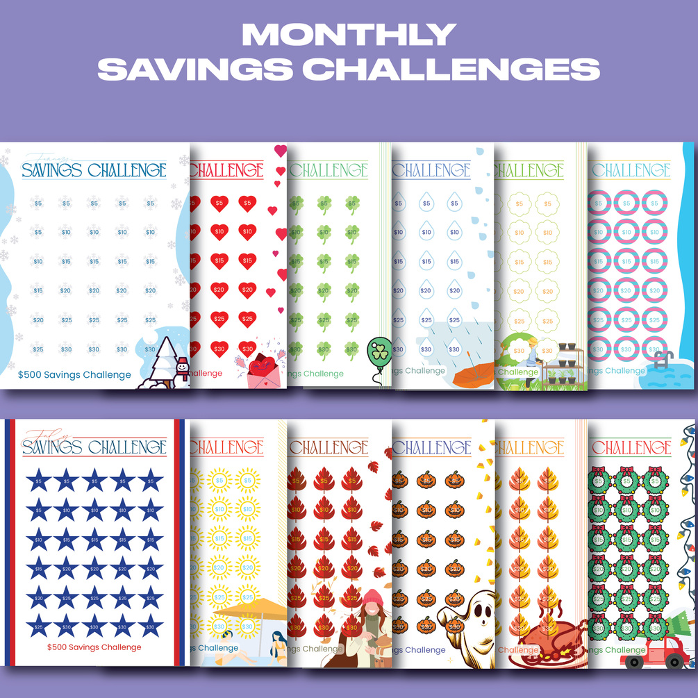 • 1 PDF Containing 12 monthly savings challenges and 1 bonus savings challenge